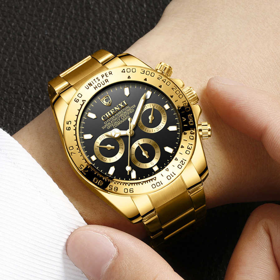 Men's Electroplating Gold Luminous Waterproof Business Watch